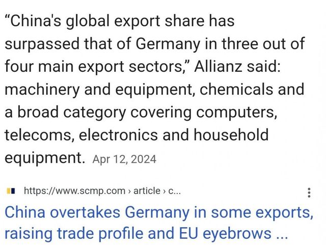 2. 독일의 초고령화로 인한 내수 비중 감소로 대중 의존도가 높아졌고 중국과 합작하며 독일 4대 산업중 3개인 기계, 화학, 전자에서는 중국에 추월당하는데 중국내 독일 자동차 매출마저 폭락중.