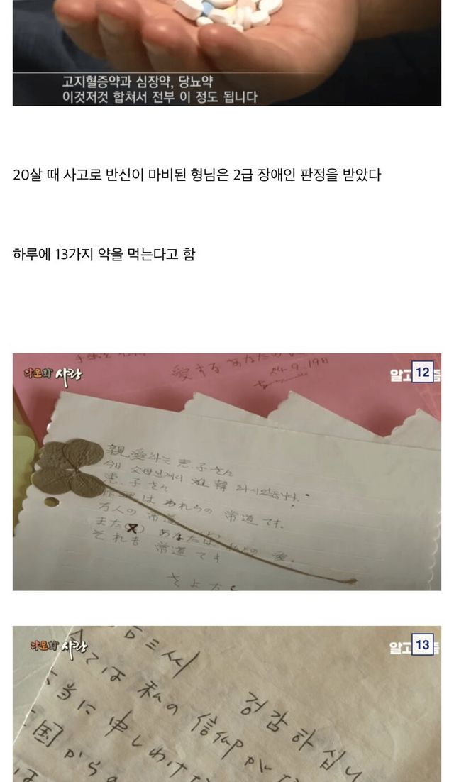 반신이 마비된 사람에게 한국으로 시집 온 일본여자