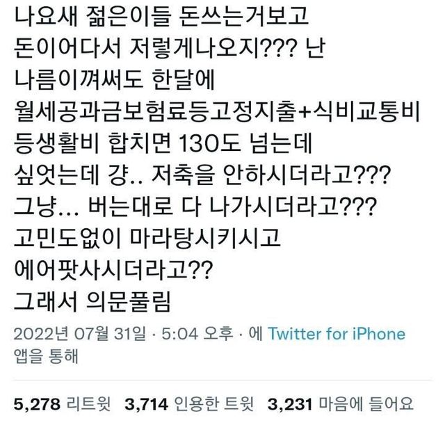 요즘 젊은이들 돈 안 모으는 이유