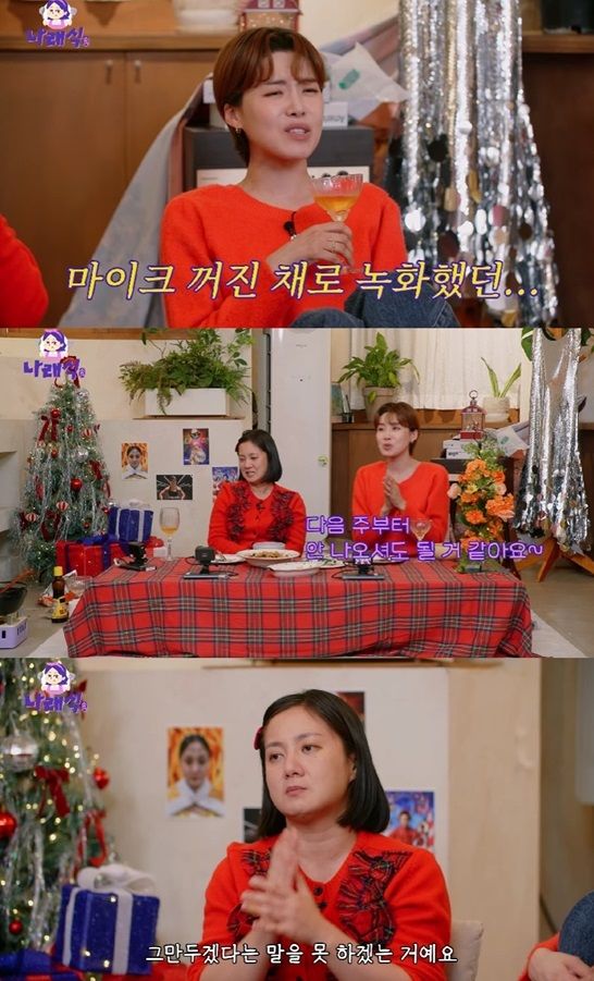 조혜련은 "그게 너무 웃겼다. 김지선이 2시간을 녹화하고 후반전을 가야했다. 쉬고 있는데 갑자기 울었다"며 "왜 우냐고 했더니 '이 프로그램에 안 맞는 거 같다고, 너무 못 살린 거 같다. 두 시간이 너무 어려웠다'고 하더라"고 이야기했다.
