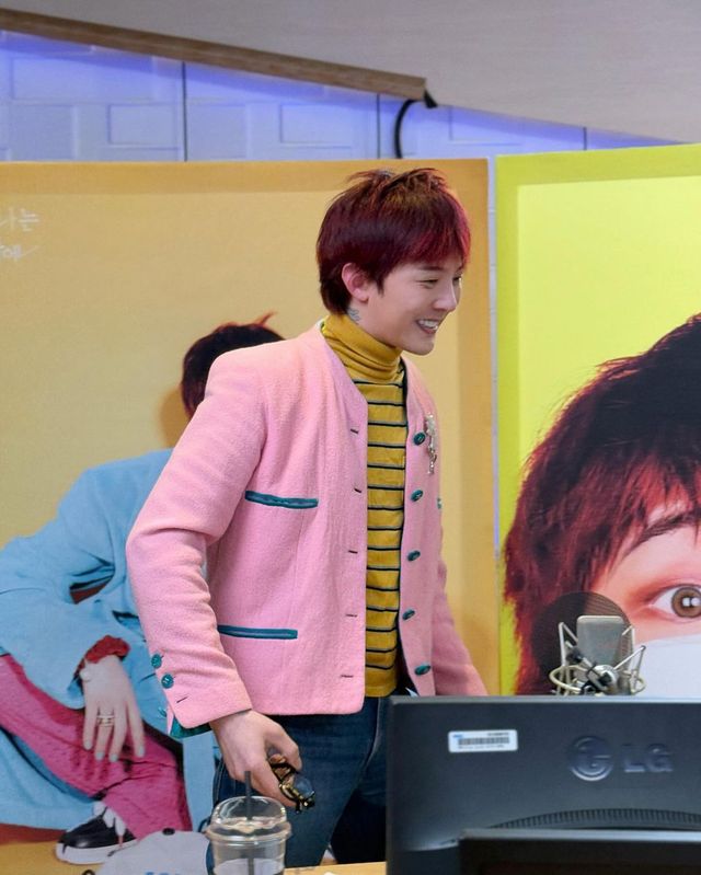 지드래곤의 부계정에서 찾은 스트라이프 룩은 앞의 모델들과는 조금 다릅니다. 빈티지한 핑크 재킷 안에 노란색 스트라이프 터틀넥을 매치한 유니크한 모습. 스카프와 티셔츠의 컬러를 통일한 것이 치트키네요.