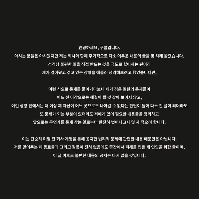 1. 나(구름)와 백예린(이하 백씨)은 과거 같은 회사 소속이자 연인관계
