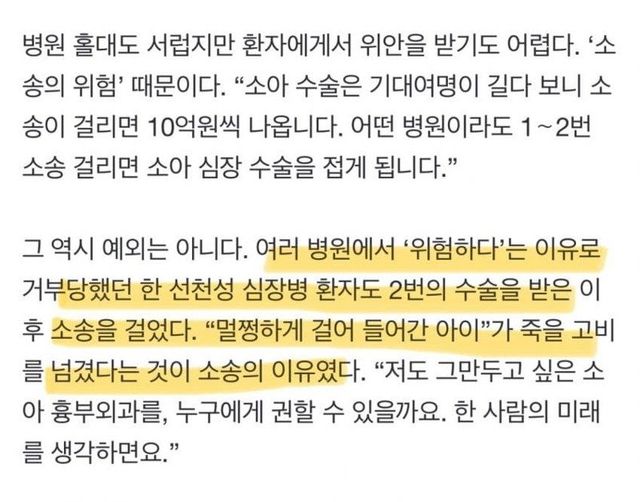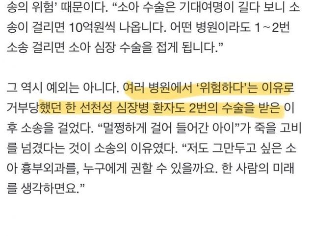 1. 여러 병원에서 위험하다고 수술 거부한 선천성 심장병 환아에게 2번이나 고난도 수술을 해서 성공 시킴 2. 부모는 “멀쩡하던 아이가 수술을 하고 나니 죽을 고비를 넘겼다“라는 이유로 의사 고발 3. 이후 아이의 상태가 다시 나빠지자 소송 건 부모가 같은 의사에게 3번째 수술을 부탁함