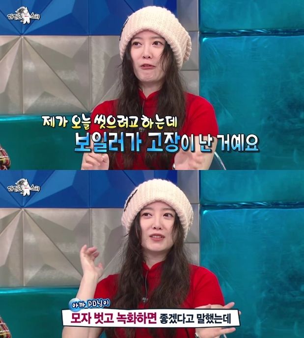구혜선은 "오늘 씻으려고 하는데 보일러가 고장이 났다. 머리를 못 감아서 모자를 썼다"고 털어놨다. 그러면서 "PD님이 모자를 벗고 녹화하면 좋다고 말했는데, 지금 모자를 못 벗는 상황"이라고 덧붙였다.