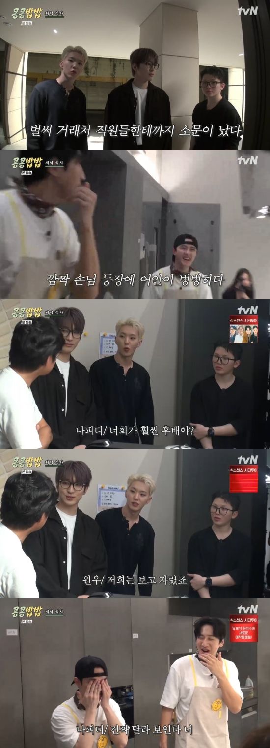 이후 호시, 원우, 우지가 구내식당을 찾았다. 제작진은 "어떻게 알고 오셨냐"라며 궁금해했고, 원우는 "어저께 라이브 하러 왔다가"라며 밝혔고, 호시는 "어제 라이브 하러 왔다가 형들이 구내식당 있다고 해서 집 근처여가지고 밥 먹으러 오라고 해가지고 공짜 밥이니까"라며 설명했다. 우지는 "난 얘네가 밥 먹으러 오라고 해가지고"라며 털어놨다.