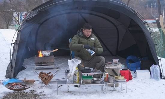 순식간에 텐트, 장작불, 주방 세팅까지 끝낸 이장우는 느닷없이 거대한 해머를 들고 꽁꽁 언 계곡 앞으로 향한다. 인정사정없이 얼음을 부수기 시작한 이장우는 패딩까지 벗어 던지고 성큼성큼 물속으로 발을 딛는다. 공개된 사진 속에 발끝부터 머리끝까지 얼음 계곡물에 풍덩 뛰어든 이장우의 모습이 포착돼 충격을 안겨준다.