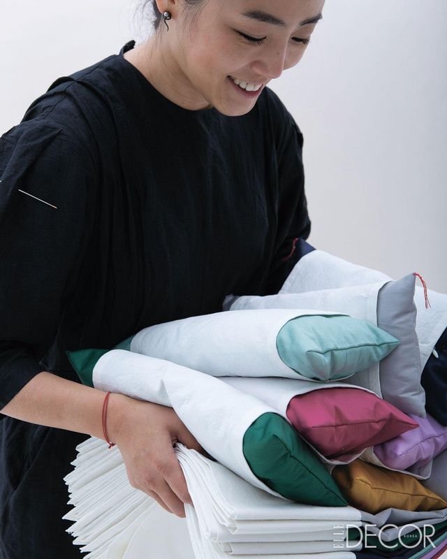 선명한 컬러를 사용한 베개와 이불만 봐도 전통을 현대적으로 재해석한 디자인이 감각적입니다. 거리가 먼 두 시대를 아우르는 자신만의 접근방식이 있다면