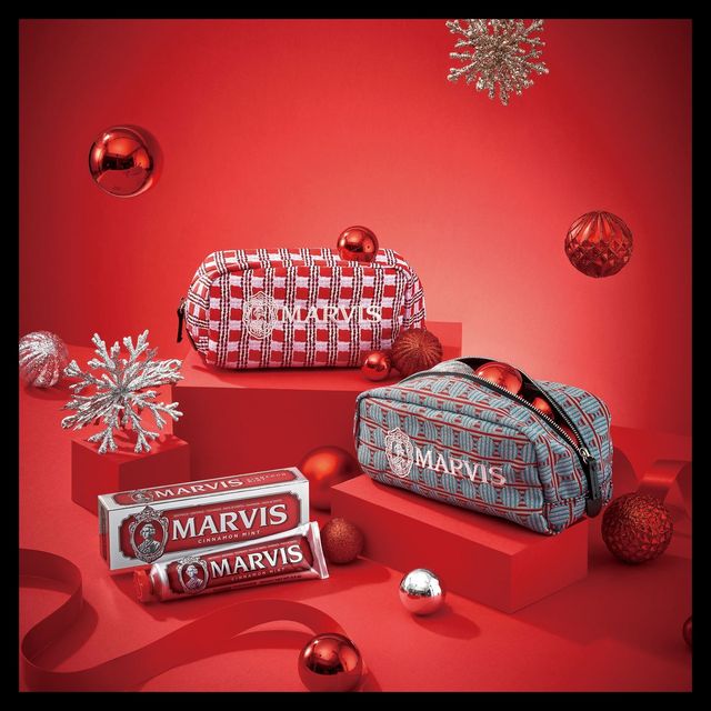 지오메트릭 패턴을 담은 자카르 파우치. 홀리데이 시즌에 어울리는 컬러 레드와 블루 2가지를 새롭게 출시한다.