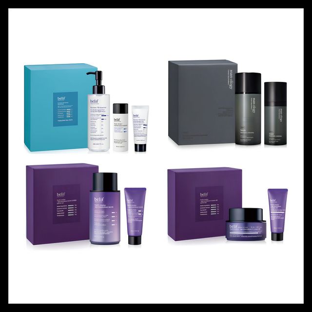 각각 수분 보충, 남성 전용 올인원, 안티에이징에 초점을 둔 4종 세트. 브랜드 베스트셀러인 수분·탄력 케어 제품들로 구성했다.