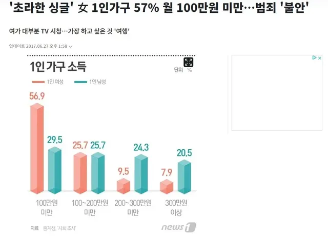 여성 1인 가구는 경제력이 가장 큰 걱정