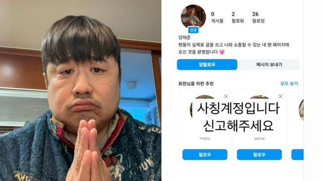같은 날 강재준 역시 개인 계정을 통해 “사칭 계정이다. 신고해 주세요”라는 글과 함께 사칭 계정 사진을 공개했다. 해당 사칭 계정 역시 소개란에 “팬들이 실제로 글을 쓰고 나와 소통할 수 있는 내 팬 페이지에 오신 것을 환영합니다”라고 적혀 있다.