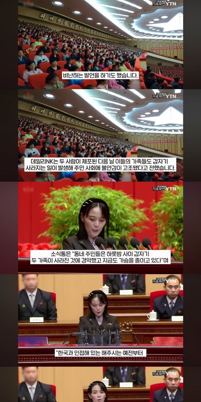 김정은 북한 국무위원장의 여동생인 김여정 노동당 부부장을 비난한 북한 주민 2명이 체포되고, 그들의 가족들도 갑자기 행방불명되는 사건이 최근 발생한 것으로 전해졌습니다.데일리NK는 황해남도 소식통을 인용해 해주시에 사는 주민 2명이 지난달 중순 김여정 동지의 평양 무인기 사건 관련…