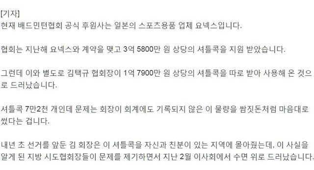 셔틀콕 배분을 투명하지 않게 한 잘못은 인정한다..라는게 협회 입장