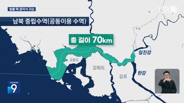 썰물때 물빠진 한강 중립구역을 걸어서 귀순함