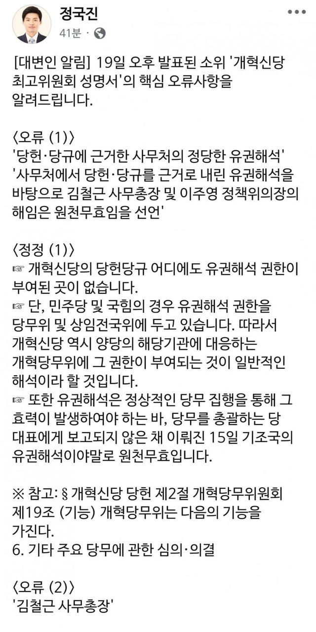 2. 정국진 선임대변인: 성명서에 대한 반박