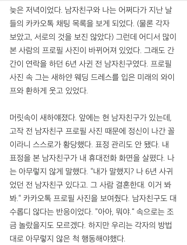 헤어진 남친 프로필을 왜 갖고 있고 현남친한테 그얘길 왜해???