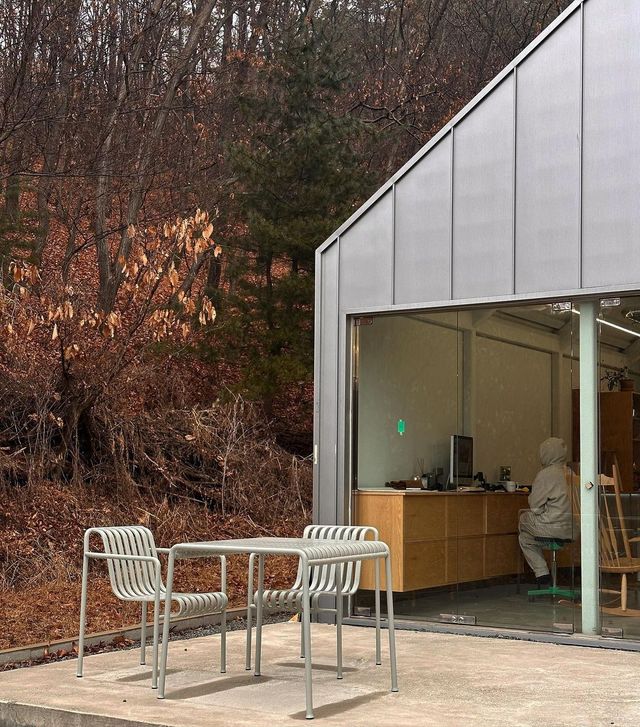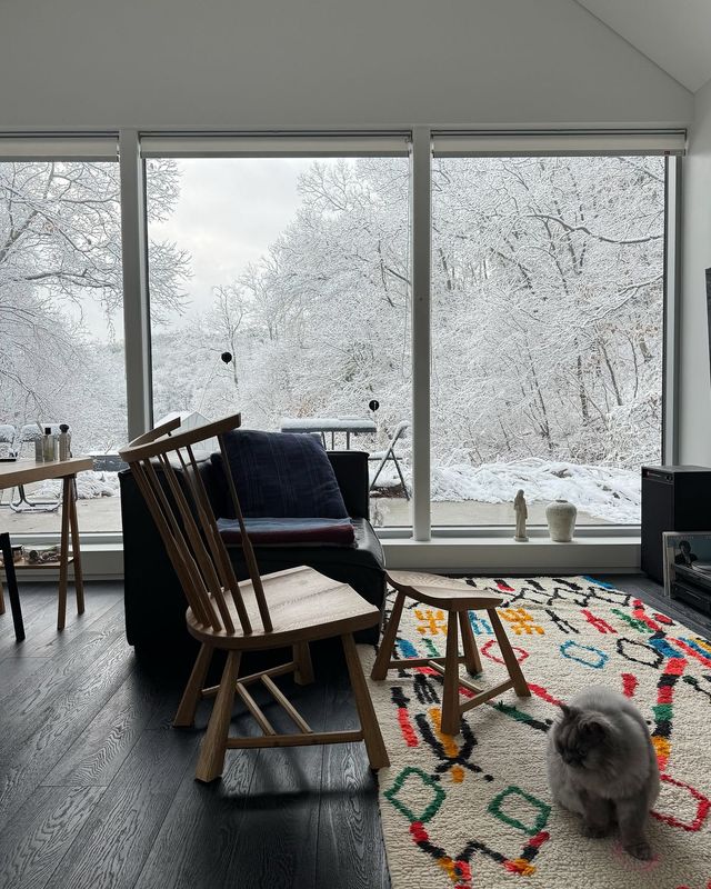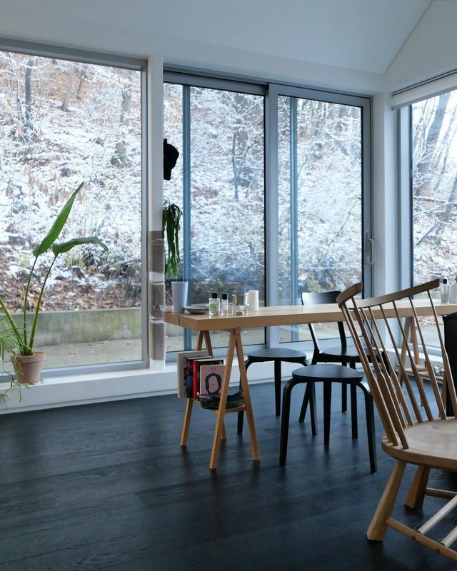 매일 아침 거실 식탁 의자에 앉아 좋아하는 도자기 컵에 갓 내린 커피를 담아 마시면서 창 너머 숲을 보는 시간. 매일 보는 장면이지만 언제나 새롭고 생경하게 다가와요. 계절의 색으로 물든 숲을 혼자 가만히 보고 있다 보면 잔잔하면서도 한편으로는 가슴 벅찬 기분이 들거든요. 캠핑장에서 매일 아침 느꼈던 그 감정과 같아요.