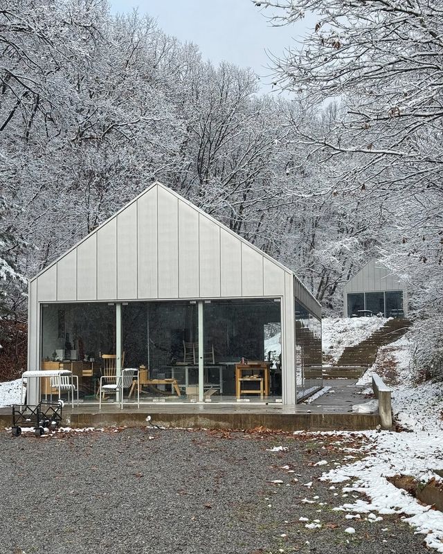 저희는 캠핑을 좋아해서 주말마다 집을 떠나 자연으로 들어가곤 했어요. 가서 쉴 땐 너무 좋았지만 짐을 풀고 텐트 치고 정리하는 걸 반복하다 보니 ‘이럴 거면 자연에 집을 지어 사는 게 낫지 않나’로 의견이 모였죠. 숲속에 정착한 계기는 굉장히 단순했고, 쉬운 결정이기도 했어요. 일과 삶, 예술이 공존하는 공간에서 살고 싶다는 소망을 젊었을 때 실현해보자고 결심이 서서 진행하게 됐습니다.