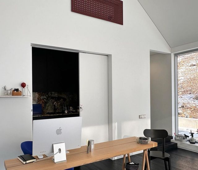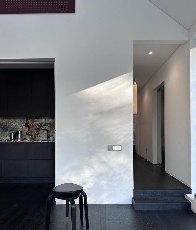 거실과 주방 사이엔 도어를 달아 공간을 분리했어요. 사실 독일 브랜드 테크노라인(Tecnoline)의 핸들을 달고 싶어서 설치한 것도 있어요. 반원 모양의 손잡이가 만나면 원형을 이루는 형태인데, 첫눈에 반했거든요. 아주 작은 요소지만 거실 전체의 인상을 좌우하는 부분이라 생각해서 욕심을 냈던 것 같아요.