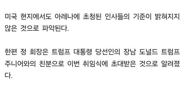 과거 트럼프 주니어는 정용진과 사석에서 bro라고 부르고 작년엔 정용진을 보러 사적으로 한국에 수차례 방문했다는 말이 있었는데
