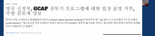 최근에 영국이 “GCAP를 백지화 할 생각은 없다”라는 의견을 표명했기 때문에 더 지켜봐야 할듯