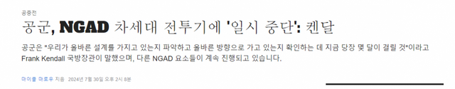 미국이 최근에 예산을 이유로 NGAD 프로젝트 일시 중단을 선언했고