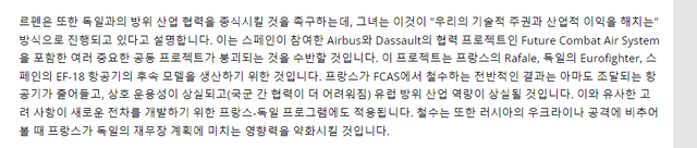 다만 완전 무논리는 아니고 러시아가 수년안에 유럽을 침공한다면 당장 전투기가 필요한데 10년 이상 바라보는 6세대 전투기에 쏟을 돈이 없다는 입장이라 완전히 이해가 안되는 건 아님