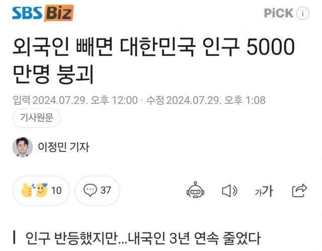 대한민국 인구 5000만명 붕괴 ㄷㄷㄷ