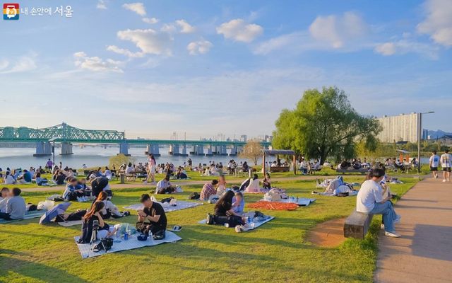 아~ 외국인들은 푸른 잔디에서 햇빛도 즐기고 자유로운거 같아~ 서울은 삭막해서….