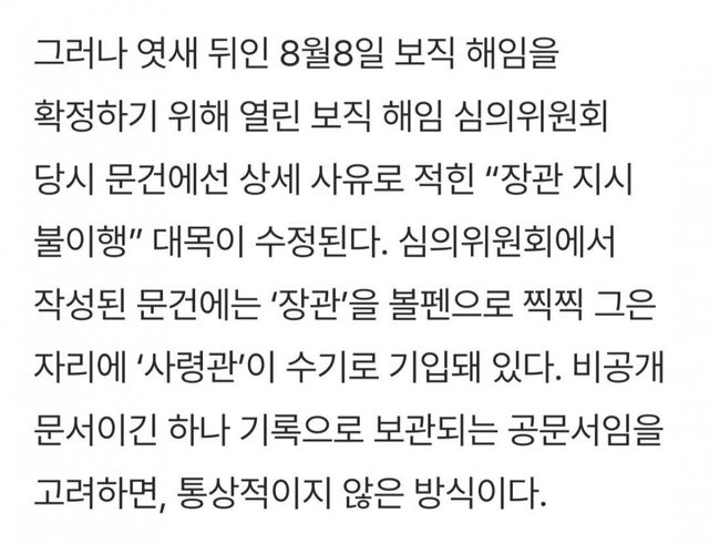 장관 지시 불이행했다며 항명죄 머시기 해임 해놓고