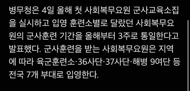 3. 병무청 오피셜 보충역 기초군사훈련 4주에서 3주로 25% 단축 ㄷㄷ