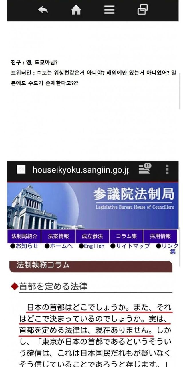 일본에는 도쿄를 수도로 정하는 법률이 존재하지 않는다함.