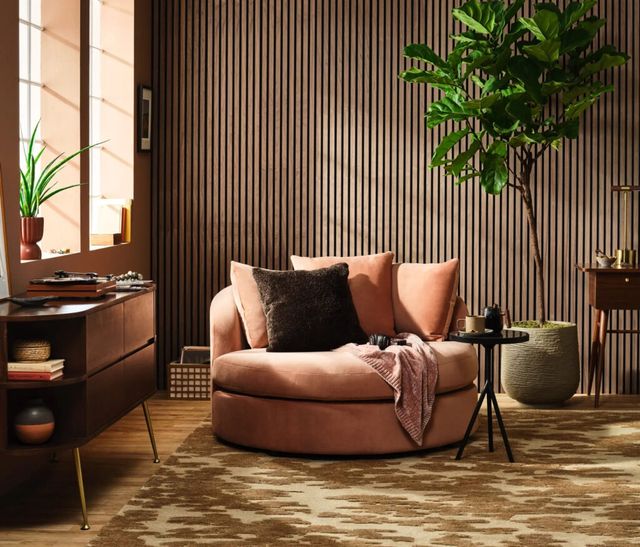 거실은 집에서 가장 많은 시간을 보내는 공간이죠. 본격적인 거실 인테리어에 앞서 아이디어를 얻고 싶다면, 모카 무스 컬러를 입은 조이버드 X 팬톤 콜라보를 활용해 보세요. 70년대 레트로 감성을 현대적으로 재해석한 안락의자 ‘아멜리아 그랜드 체어’는 넉넉한 사이즈와 부드러운 곡선으로 몸을 편안하게 감싸줍니다. 어느 공간에도 잘 어울리는 조화로운 디자인이 특징이죠.