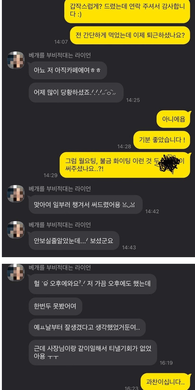 엄마가 아내가 너무 연락 많이해서 차단했대