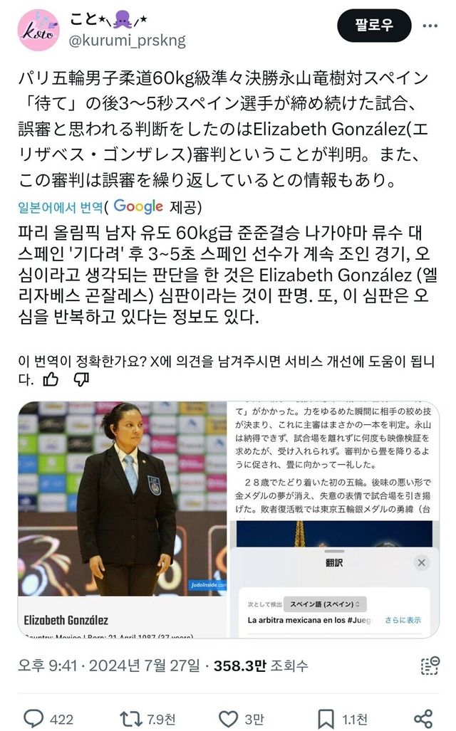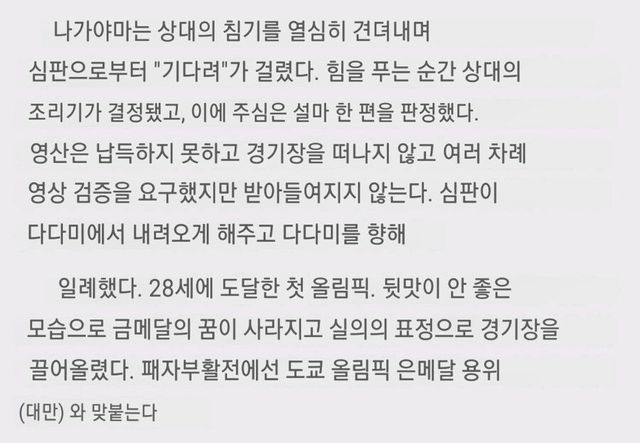 3) 일본 선수는 계속 항의하면서 영상 판독을 요구했지만, 전부 묵살함