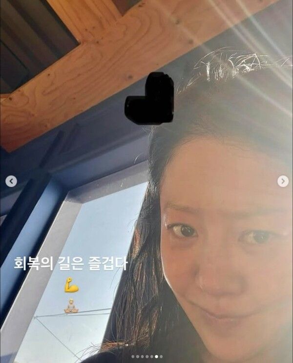함께 공개된 셀카 사진에는 “회복의 길은 즐겁다”라는 글귀를 덧붙이며 팬들에게 자신의 건강 상태를 알렸다.