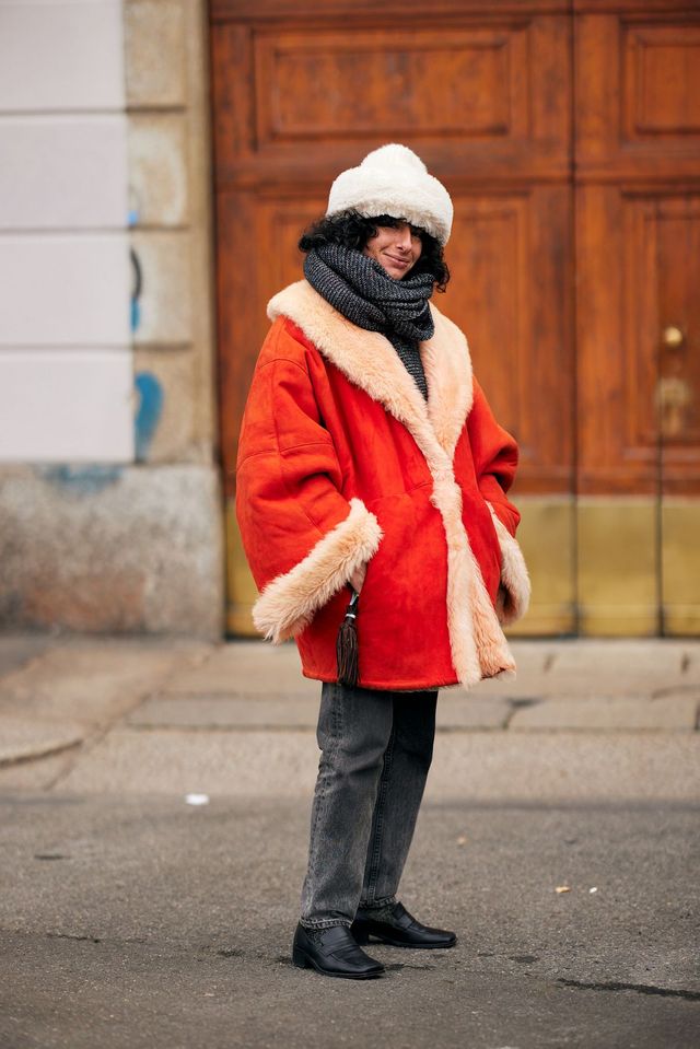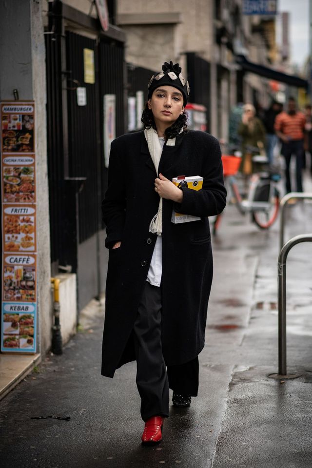니트 보닛 스타일은 밀라노 길거리에서 가장 많이 포착된 아이템 중 하나입니다. 무심하게 머리와 목에 둘러매듯 연출하기도 좋고, 클래식한 소녀 감성을 끌어올리는 데도 필수죠.