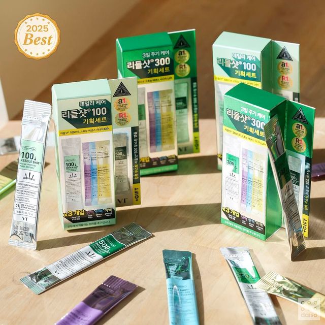 다이소 품절 대란템으로 유명한 VT 리들샷. 새해를 맞이하여 리들샷과 함께 쓰면 시너지 효과를 볼 수 있는 꿀조합템을 출시했다. 에셋스 1병 가득 담긴 ‘리들샷® 리페어 EGF 에센스 패드’부터 피부 컨디션을 부드럽게 깨워주는 ‘리들샷® 300’, 피부 장벽을 강화하고 지친 피부를 촉촉하게 케어해주는 ‘리페어 EGF 에센스’, 그리고 에스테틱급 케어를 받고 온 듯한 효과를 선사할 ‘리페어 EGF 랩핑 스팀 마스크팩’까지! 피부 나이가 한 살 더 먹은만큼 피부 관리에 변화를 주고 싶다면? 처음 발랐을 때 따끔하지만 그만큼 피부 진정 및 재생 효과가 좋은 리들샷과 꿀조합 템으로 손쉽게 집에서도 프리미엄 에스테틱 관리의 효과를 누려보길.