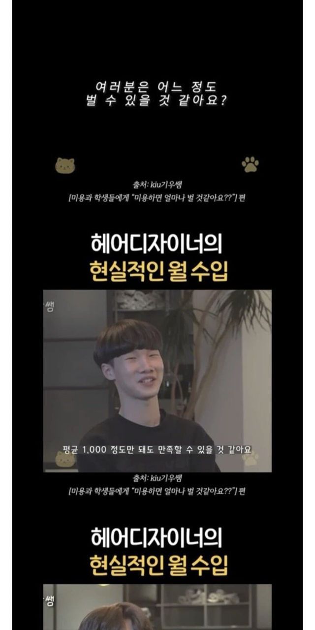 미용과 학생들의 경우 1000-3000 정도로 다소 소박함.