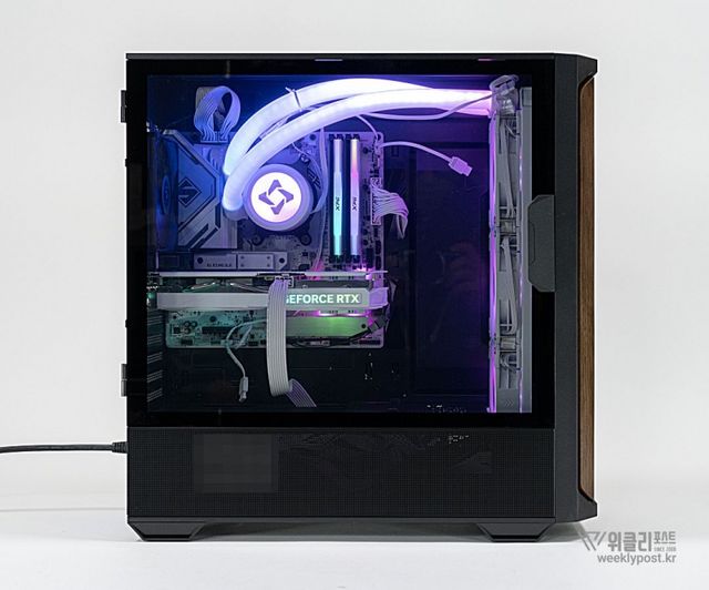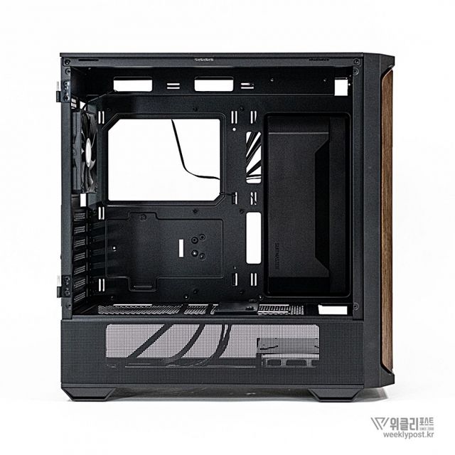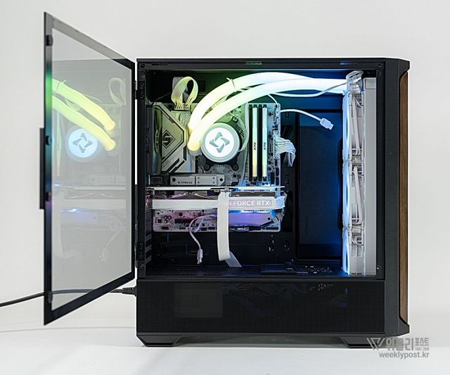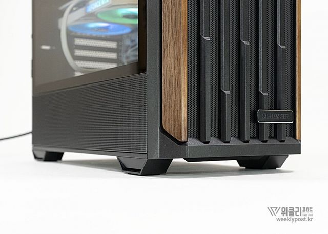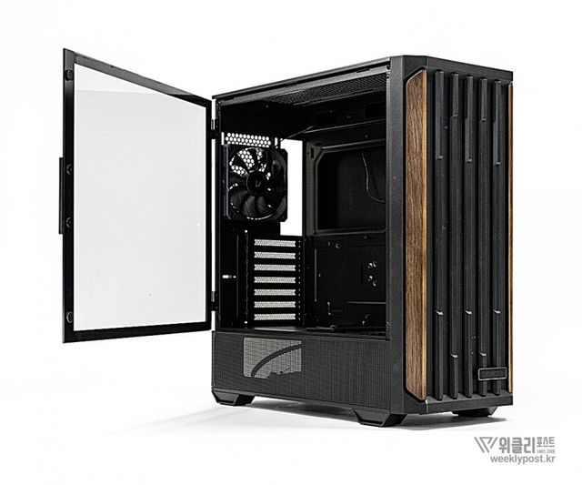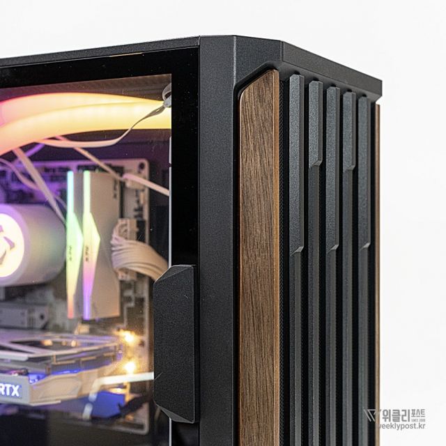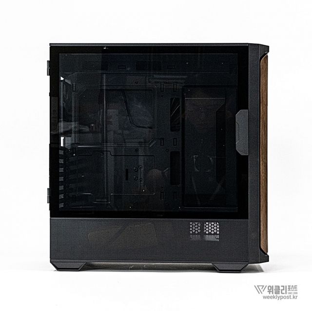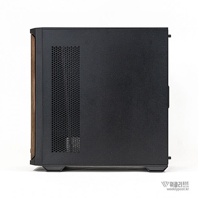 전면 패널에 원목을 사용해 감성을 더한 것은 분명 매력적이다. 하지만 다른 부분에도 신경을 썼을까? 요즘 PC 케이스라면 트렌드 반영은 기본이다. 전면에서 고급스러운 우드 패턴을 즐기다가 측면으로 눈을 돌리면 놀라움이 이어진다. 내부를 훤히 들여다볼 수 있는 대형 강화유리 패널이 적용되어 시각적 만족감을 선사한다. 품격과 트렌드라는 두 가지를 모두 충족시킨 설계라 할 수 있다.