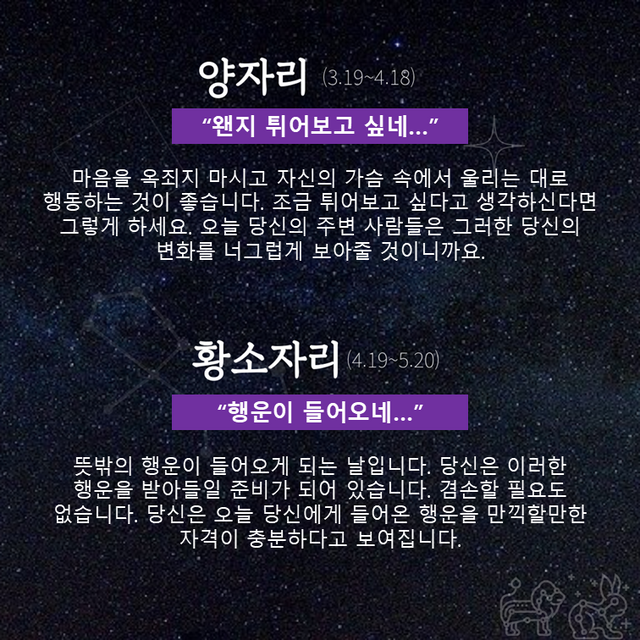 Δ 양자리 : 왠지 튀어보고 싶네…