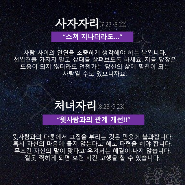 Δ 처녀자리 : 윗사람과의 관계 개선!!