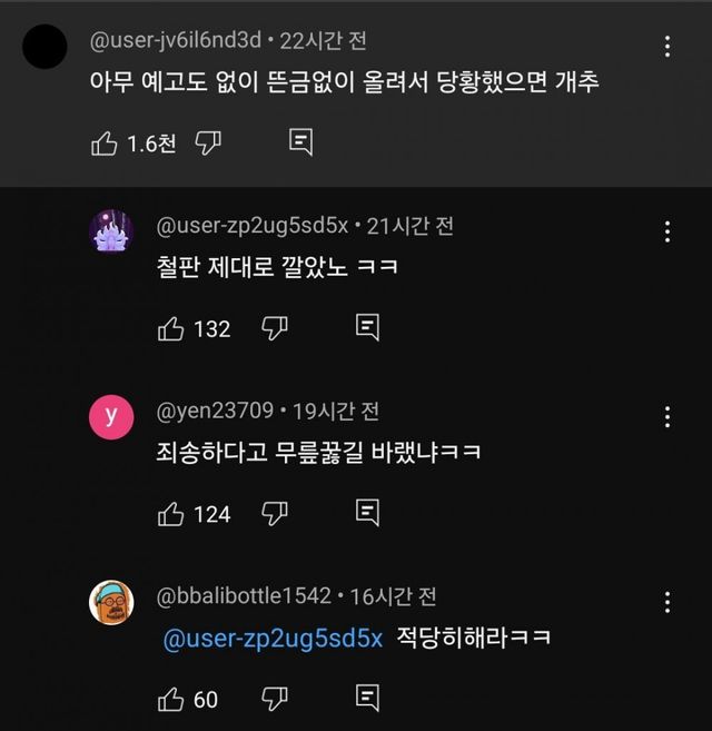 너무 심하게 비난했다는 반응