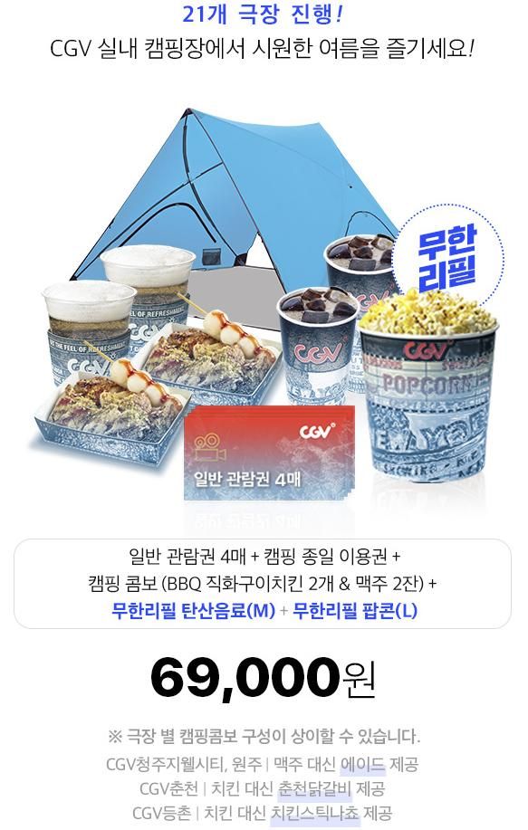CGV 21개점에 여름이벤트 캠핑 패키지를 판매함