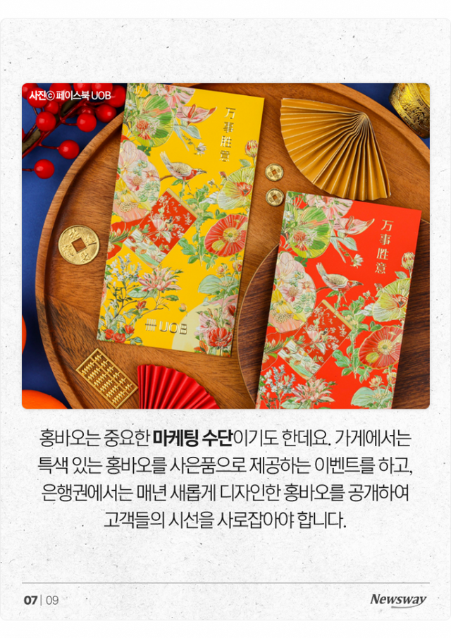 홍바오는 중요한 마케팅 수단이기도 한데요. 가게에서는 특색 있는 홍바오를 사은품으로 제공하는 이벤트를 하고, 은행권에서는 매년 새롭게 디자인한 홍바오를 공개하여 고객들의 시선을 사로잡아야 합니다.