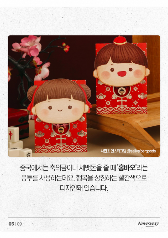중국에서는 축의금이나 세뱃돈을 줄 때 '홍바오'라는 봉투를 사용하는데요. 행복을 상징하는 빨간색으로 디자인돼 있습니다.