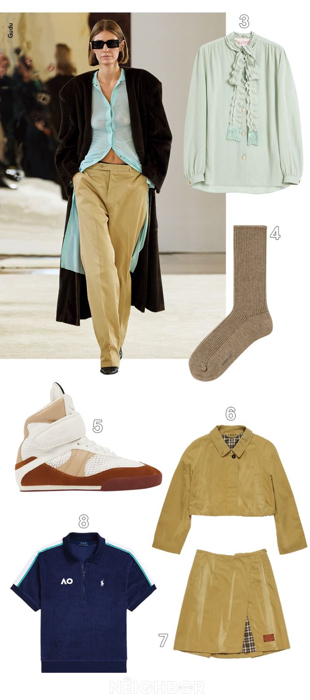 6, 7 Acne Studios 체크 패턴 안감으로 포인트를 더한 베이지 색상 크롭트 재킷과 셋업 미디스커트 모두 가격 미정.