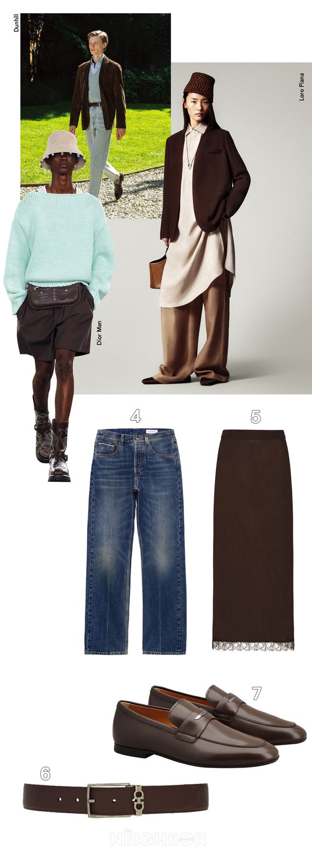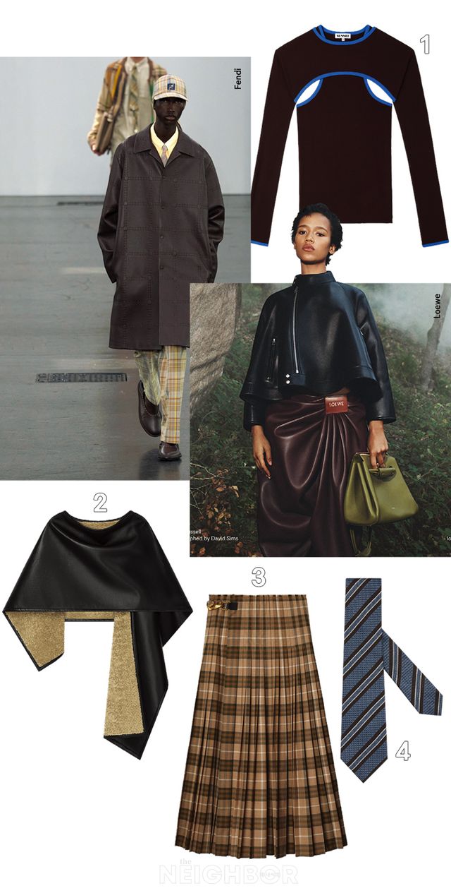 모카 무스 컬러의 매력을 가장 잘 드러내는 소재는 단연 레더다. 브라운 톤의 매끈한 레더 재킷에 워싱 데님을 매치해 쿨한 무드를 강조하거나, 로로피아나가 제안하는 룩처럼 내추럴한 색감의 리넨 아이템을 매치해보자. 여기에 스트라이프, 체크 패턴 등 기하학적 프린트로 포인트를 주면 자칫 단조로울 수 있는 룩에 위트를 가미할 수 있다.