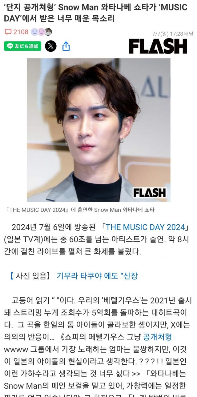 혐한천지 야후뉴스 댓글은 2100개에 대부분이 쟈니스 욕