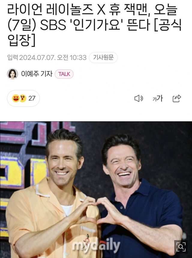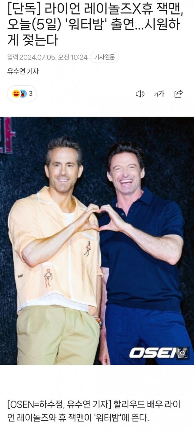 둘이 영화 <데드풀과 울버린> 홍보로 내한함
